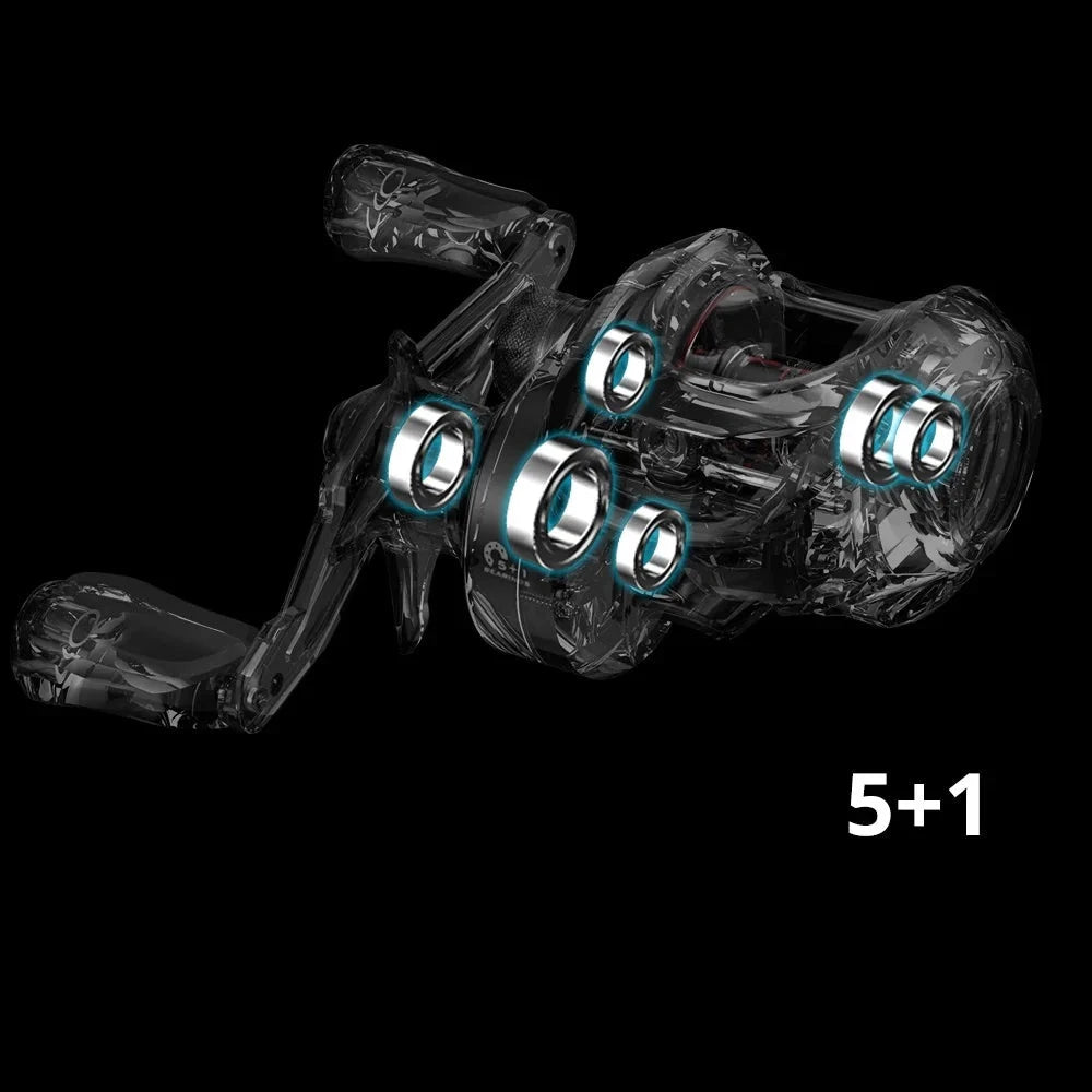 5+1 Rolamentos de Esferas: Redução de ruído e aumento da distância de arremesso com rolamentos de aço inoxidável.